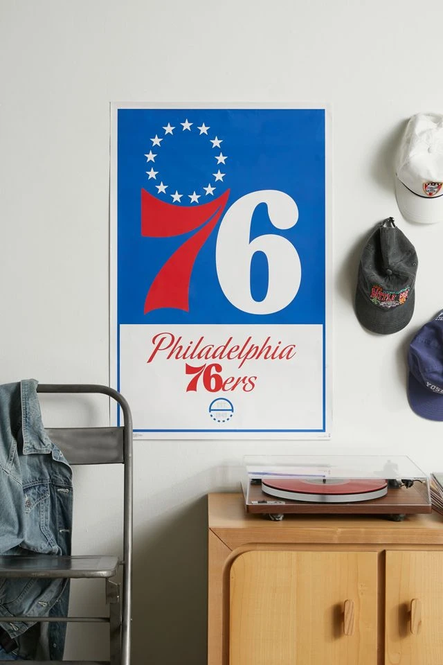 Celebrate your favorite sports team with this poster featuring the Philadelphia 76ers logo.
