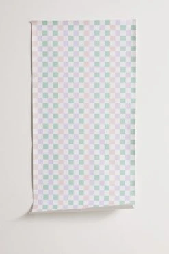 Easily removable stick-on wallpaper in a candy-hued repeating pastel checkerboard print by Ninola Design that curates an effortlessly cool mood. Cut in panels you can use to accent one wall or tile all over your room, in a matte finish with vibrant, water-based, non-toxic inks. Comes with one strip of wallpaper in an allover repeating pattern – choose from three different sizes to best suit your space.