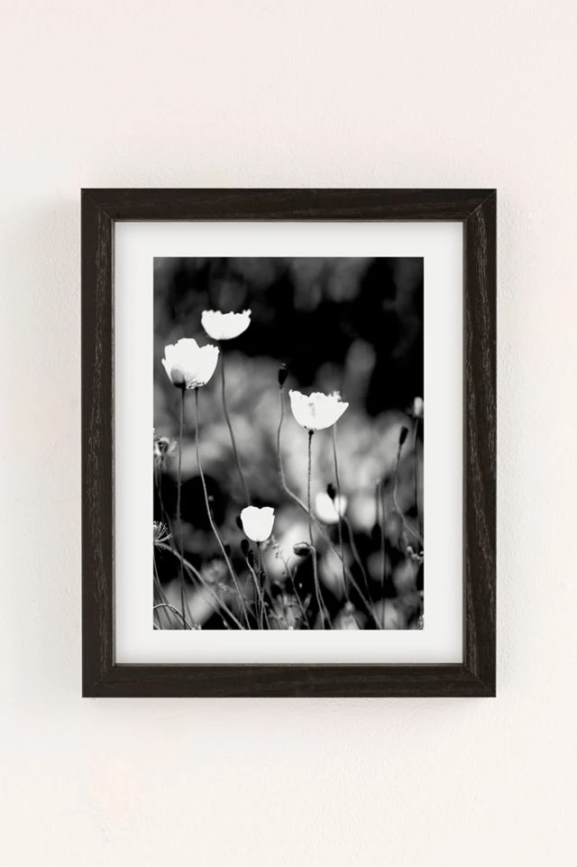 Capturing a wildflower-filled meadow up close, this photo by Paivi Vikstrom features sunlit blooms in black + white. Printed on archival paper made from cotton pressed in Italian mills, this high-quality art print is available in sizes and frames just right for your space. First select your frame (or go frameless), then select your size.