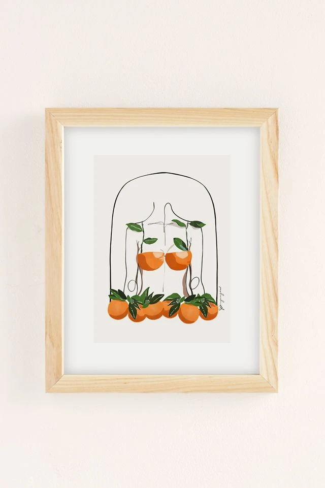 Add some zest to your space with this art print from Perryn Ryan featuring oranges surrounding a curvy torso. Printed on archival paper made from cotton pressed in Italian mills, this high-quality art print is available in sizes and frames just right for your space. First select your frame (or go frameless), then select your size.