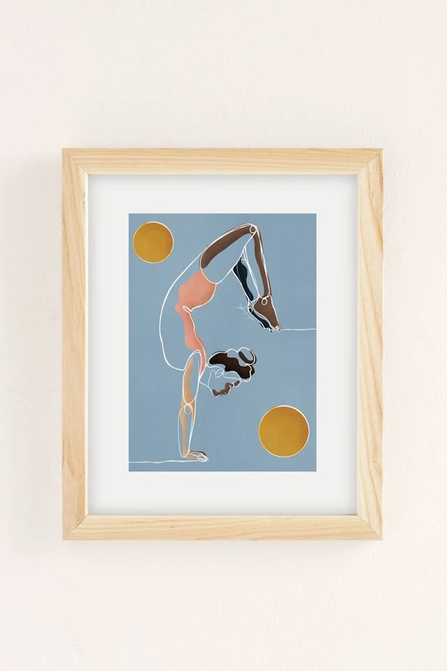 Art print by Perryn Ryan featuring a figure practicing the scorpion pose. Printed on archival paper made from cotton pressed in Italian mills, this high-quality art print is available in sizes and frames just right for your space. First select your frame (or go frameless), then select your size.