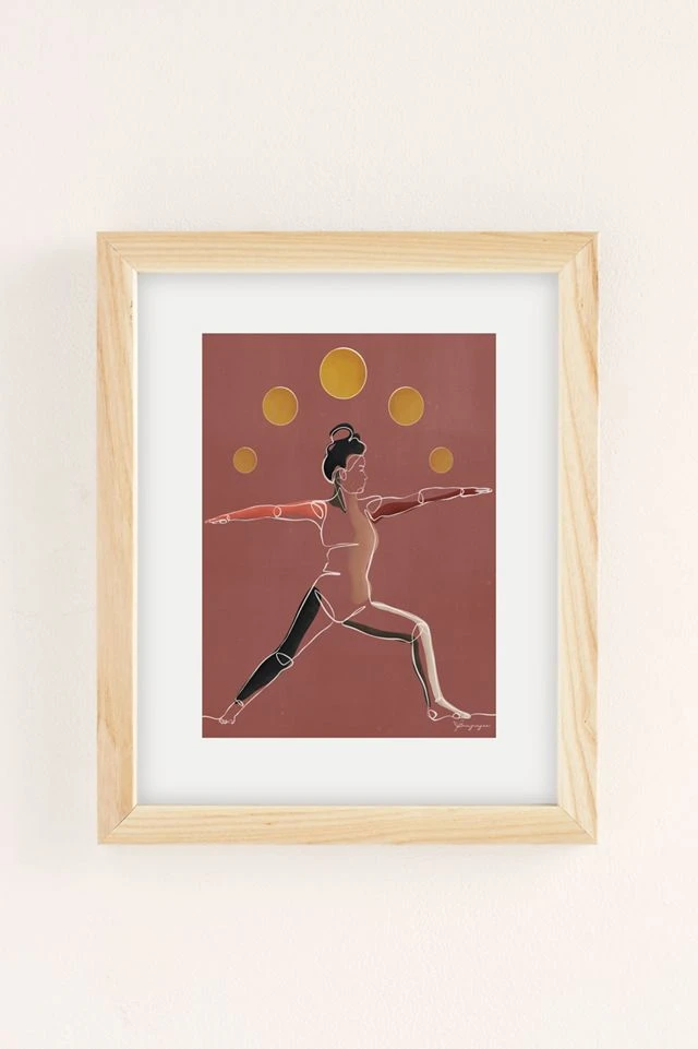 Art print by Perryn Ryan featuring a figure practicing the warrior yoga pose. Printed on archival paper made from cotton pressed in Italian mills, this high-quality art print is available in sizes and frames just right for your space. First select your frame (or go frameless), then select your size.