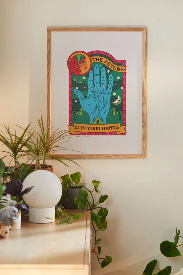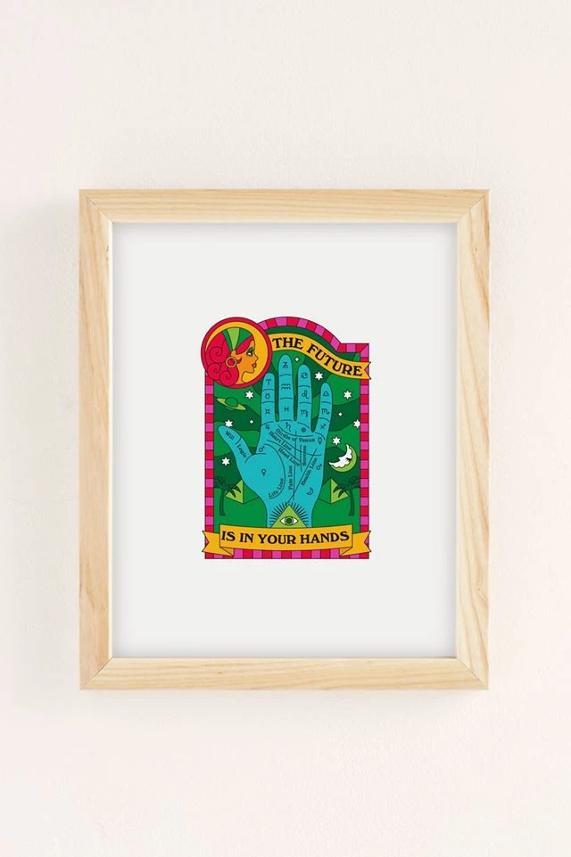 Art print by Pilgrim Hodgson featuring a sweet palmistry diagram. Printed on archival paper made from cotton pressed in Italian mills, this high-quality art print is available in sizes and frames just right for your space. First select your frame (or go frameless), then select your size.