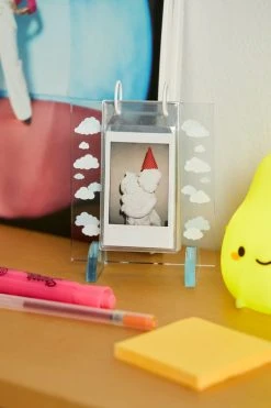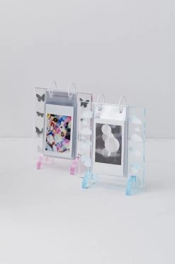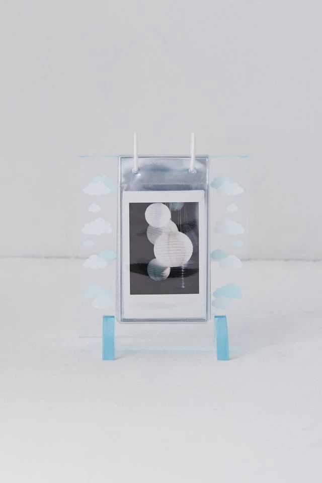 Display your collection of instant photos with this acrylic frame decorated with whimsical icons. Equipped with plastic sleeves that hold your favorite mini instant photos. Topped with metal rings for flipping through your photo gallery. Available exclusively at Urban Outfitters.