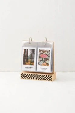 Display your collection of Instax mini photos with this wooden flip picture frame. Complete with 28 plastic sleeves that can hold two Instax Mini photos each. Holds up to 56 Instax Mini photos. Available exclusively at Urban Outfitters.