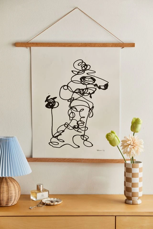 Art print by Reubens from PSTR Studio featuring an abstract line drawing of a poodle. Printed on archival paper made from cotton pressed in Italian mills, this high-quality art print is available in sizes just right for your space.