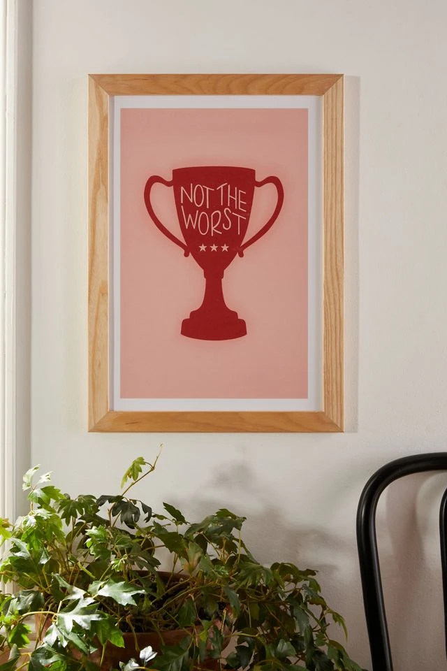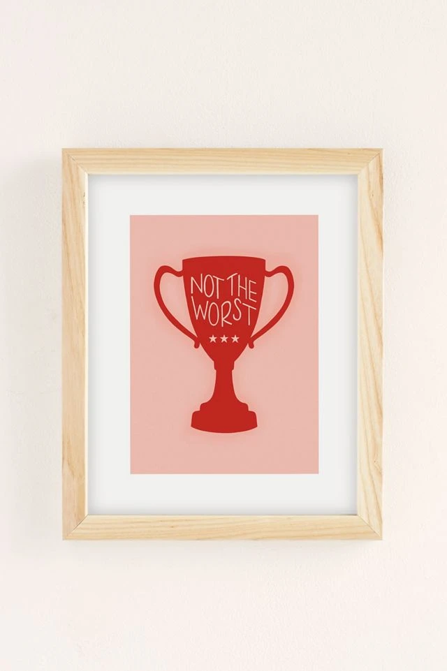 Show off your prize for being OK with this art print by Rachel Szo featuring a trophy awarded for not being the worst. Printed on archival paper made from cotton pressed in Italian mills, this high-quality art print is available in sizes and frames just right for your space. First select your frame (or go frameless), then select your size.