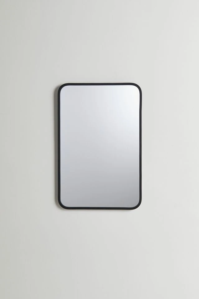 Rectangular mirror with a thin modern frame. Oversized silhouette to make a décor statement in any space.