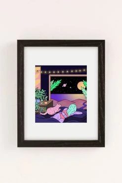 Art print by Robin Eisenberg featuring a figure watching the moon. Printed on archival paper made from cotton pressed in Italian mills, this high-quality art print is available in sizes and frames just right for your space. First select your frame (or go frameless), then select your size.
