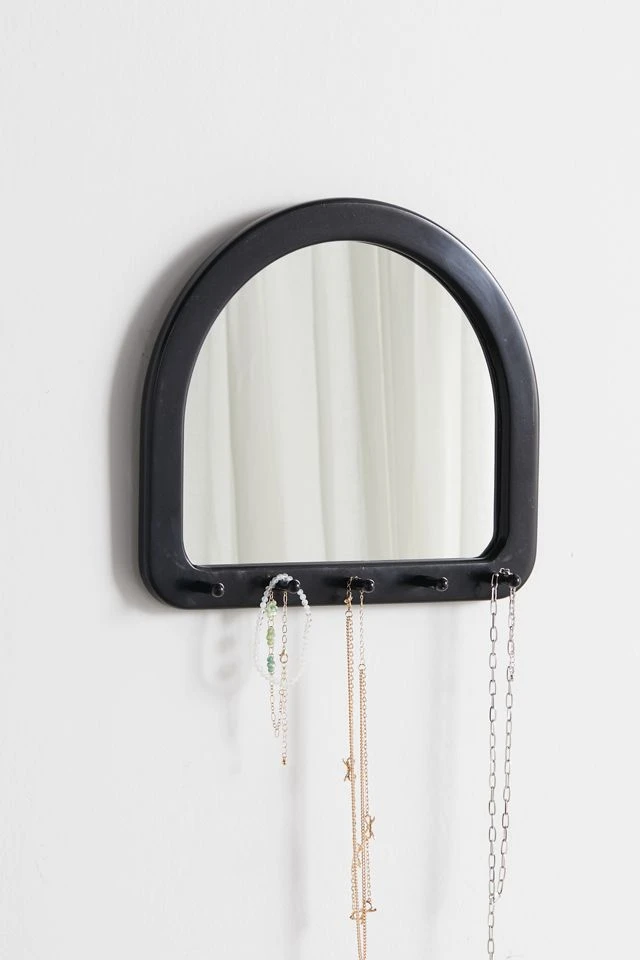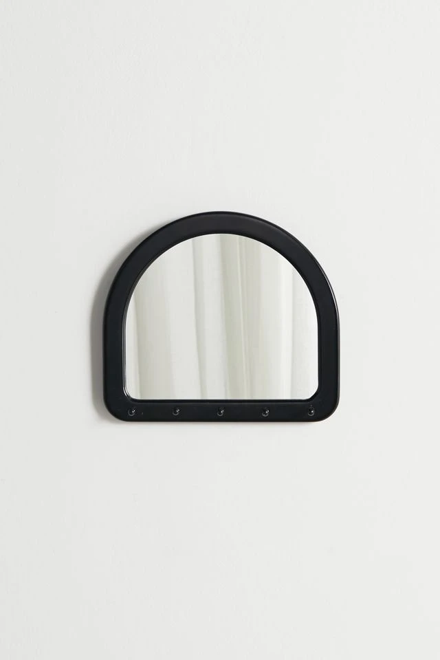 Curate an artfully modern wall space with this arc-shaped mirror featuring soft, curved corners with five hooks along the bottom edge for displaying your essentials. Perfect for dressing up your getting-ready space or entryway! Available exclusively at Urban Outfitters.