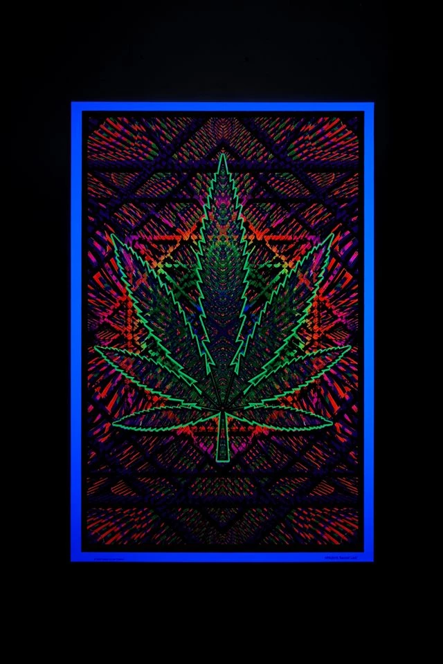 Channel psychedelic vibes with this blacklight poster featuring a trippy leaf.