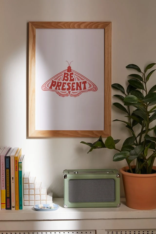 Art print by Sagepizza featuring a moth with a positive message in the wings. Printed on archival paper made from cotton pressed in Italian mills, this high-quality art print is available in sizes and frames just right for your space. First select your frame (or go frameless), then select your size.