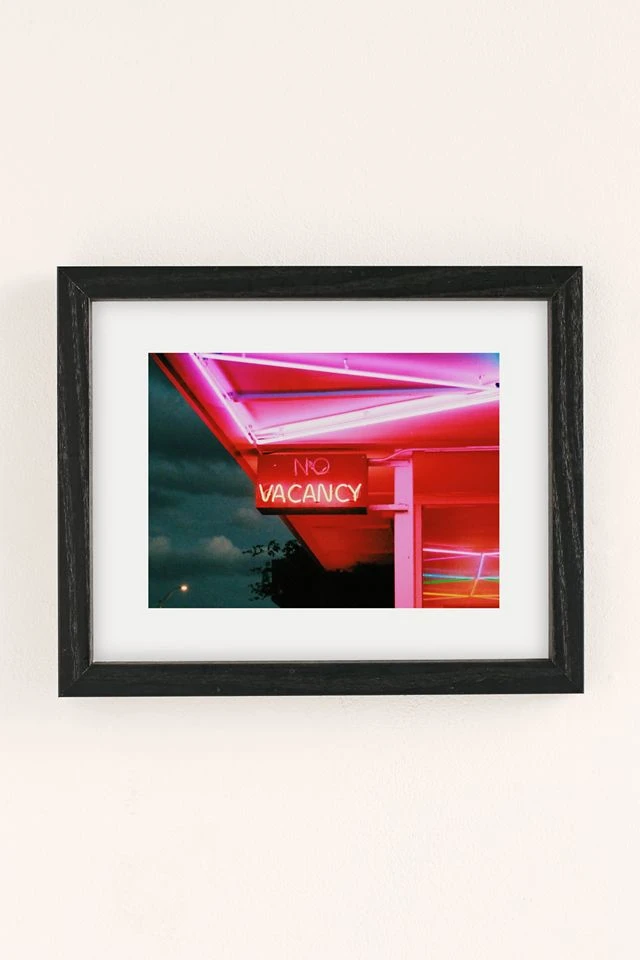 Give your space a retro feel with this art print from Samantha Hearn featuring a neon vacancy sign. Printed on archival paper made from cotton pressed in Italian mills, this high-quality art print is available in sizes and frames just right for your space. First select your frame (or go frameless), then select your size.
