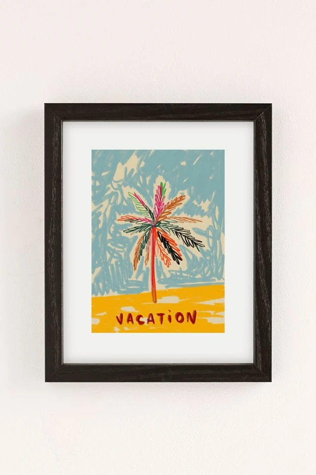 Inspired by beachside jaunts, this art print by sandrapoliakov features a colorful palm tree against a bright blue sky. Printed on archival paper made from cotton pressed in Italian mills, this high-quality art print is available in sizes and frames just right for your space. First select your frame (or go frameless), then select your size.