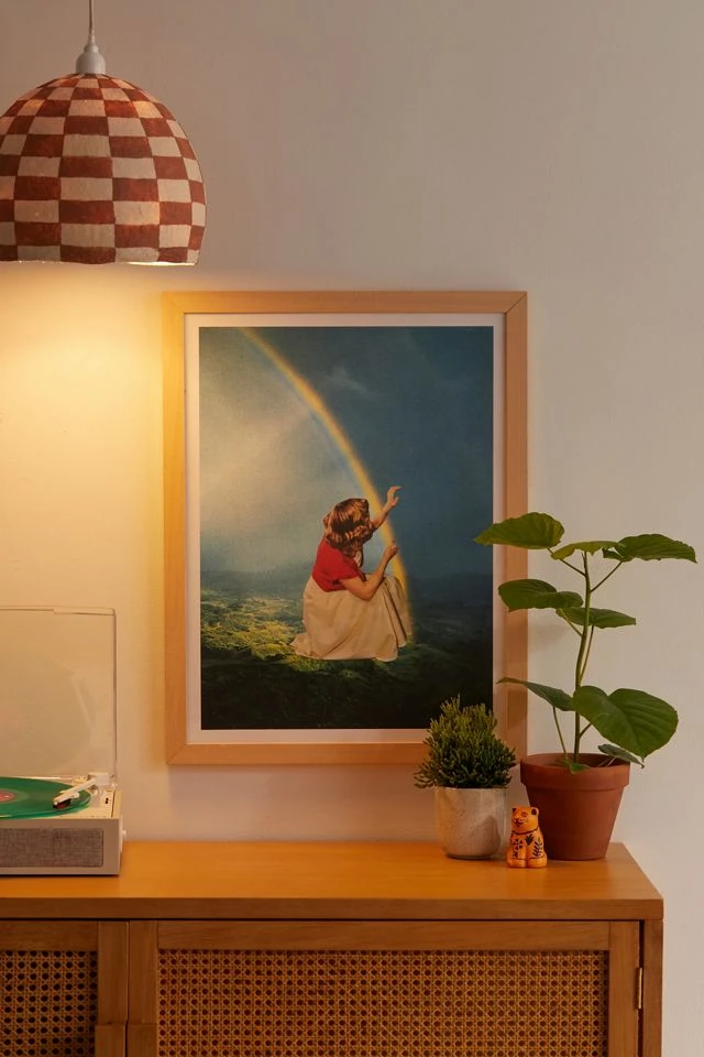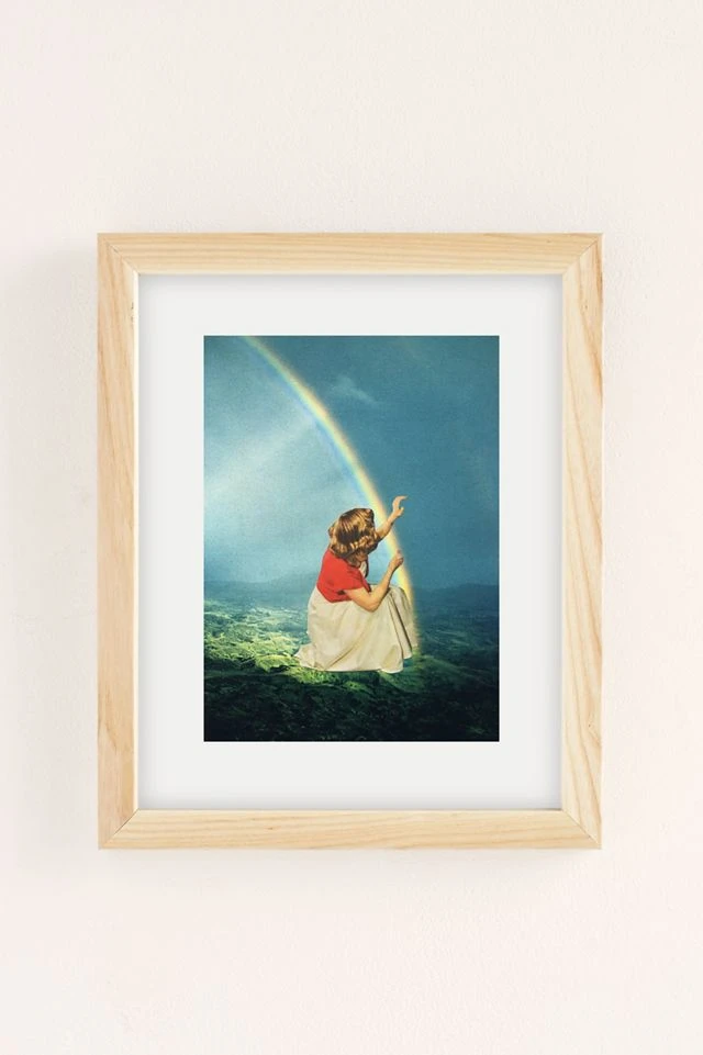 Find your way past the rainbow with this collaged art print by Sarah Eisenlohr. Printed on archival paper made from cotton pressed in Italian mills, this high-quality art print is available in sizes and frames just right for your space. First select your frame (or go frameless), then select your size.