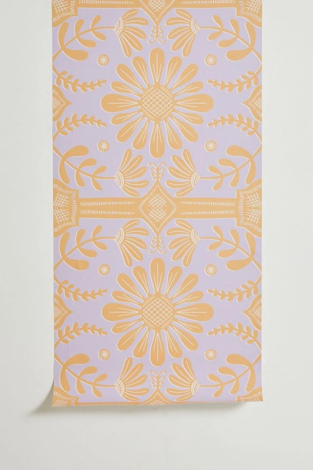 Easily removable stick-on wallpaper in a vibrant floral print from Sewzinski. Cut in panels you can use to accent one wall or tile all over your room. Comes with one strip of wallpaper in an allover repeating pattern – choose from three different sizes to best suit your space.