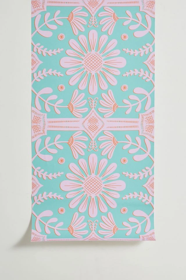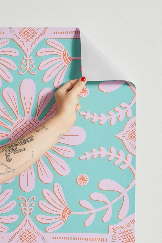 Easily removable stick-on wallpaper in a vibrant floral print from Sewzinski. Cut in panels you can use to accent one wall or tile all over your room. Comes with one strip of wallpaper in an allover repeating pattern – choose from three different sizes to best suit your space.