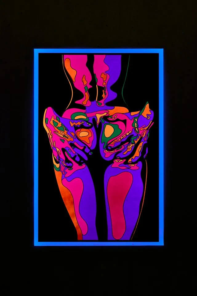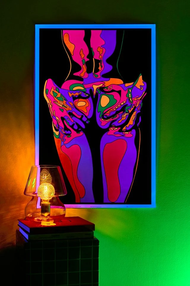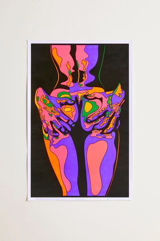 Celebrate the human form with this blacklight poster that features a figure in an embrace in a rich assortment of electrifying hues.