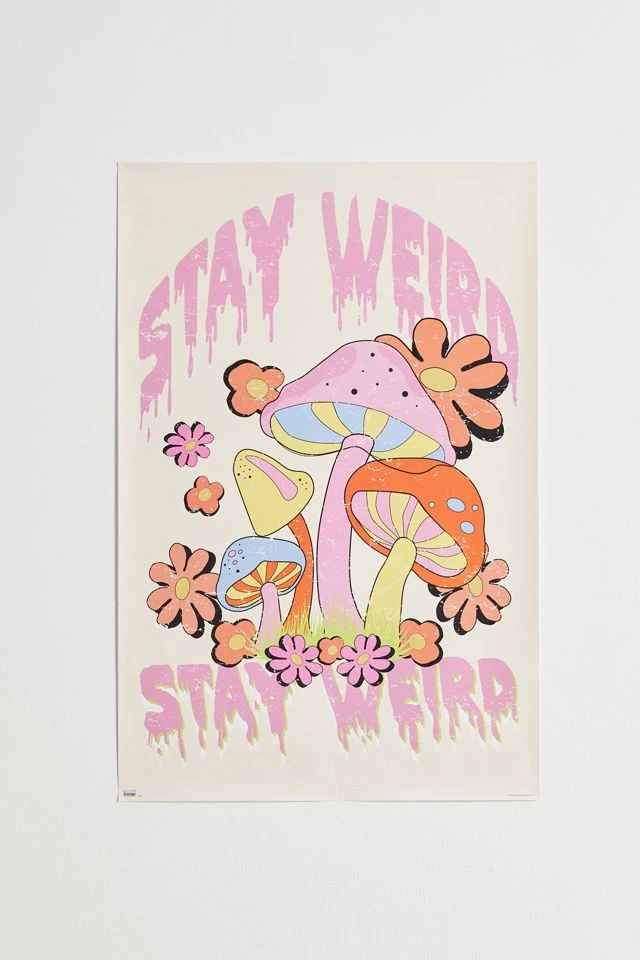 Bring groovy psychedelic vibes to your space with this poster featuring illustrated retro mushrooms and florals paired with melting lettering.