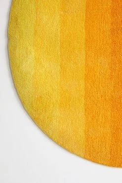 Bring sunshine to your space with this modernist wall hanging, featuring a round, shag-tufted texture with lines of rich, saturated color in a gradient orientation. Backed with D-rings to mount to wall.