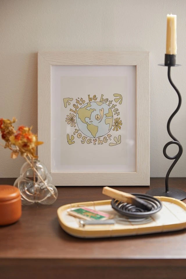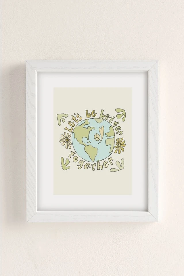 Illustrated art print by Surfy Birdy featuring a reminder to take care of the planet. Printed on archival paper made from cotton pressed in Italian mills, this high-quality art print is available in sizes and frames just right for your space. First select your frame (or go frameless), then select your size.
