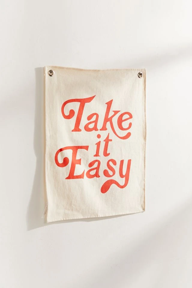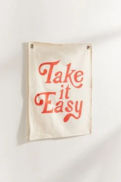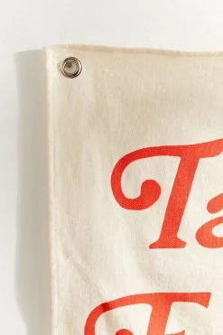 A reminder to take a deep breath, this cotton flag tapestry is so low key. Inspired by vintage typography with a graphic print and cotton weave, complete with metal grommets at corners for easy hanging. Only at Urban Outfitters.