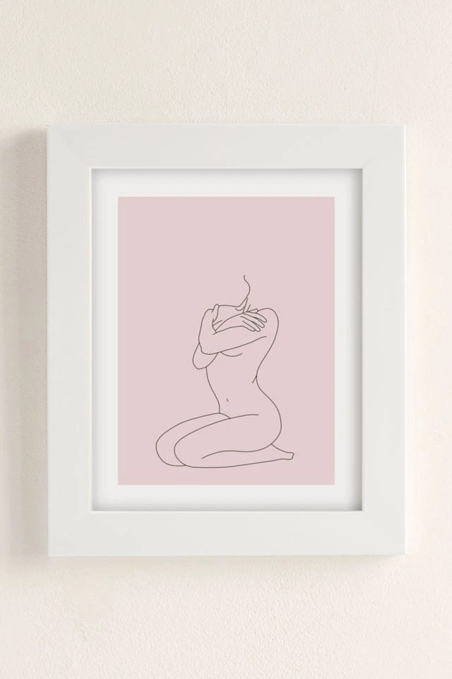 Intimate linework illustration by The Colour Study depicting the angles and curves of a female form. Printed on archival paper made from cotton pressed in Italian mills, this high-quality art print is available in sizes and frames just right for your space. First select your frame (or go frameless), then select your size.
