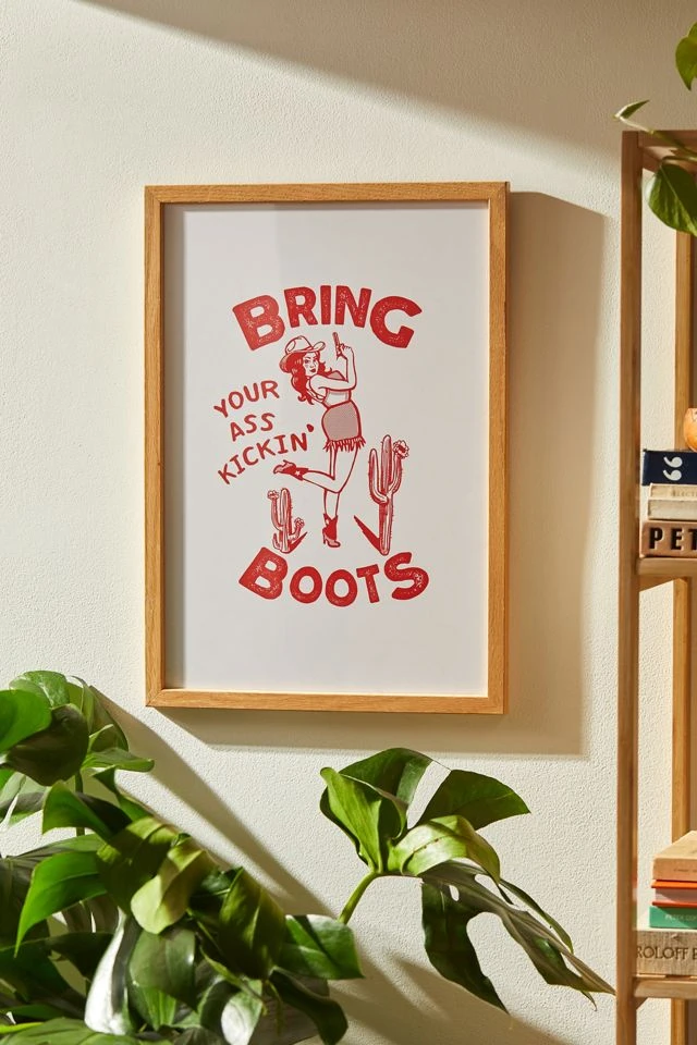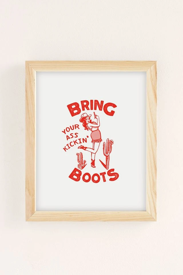 Art print by The Whiskey Ginger featuring a western-inspired message and cowgirl designed in a bright shade of red. Printed on archival paper made from cotton pressed in Italian mills, this high-quality art print is available in sizes and frames just right for your space. First select your frame (or go frameless), then select your size.