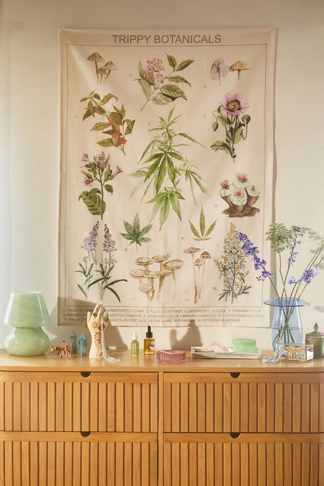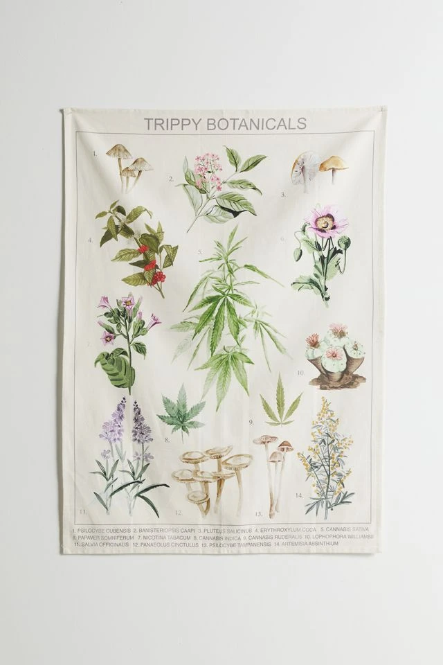 Create a laid-back mood for your space with this vintage-inspired tapestry featuring your fave leafy & psychedelic botanicals.