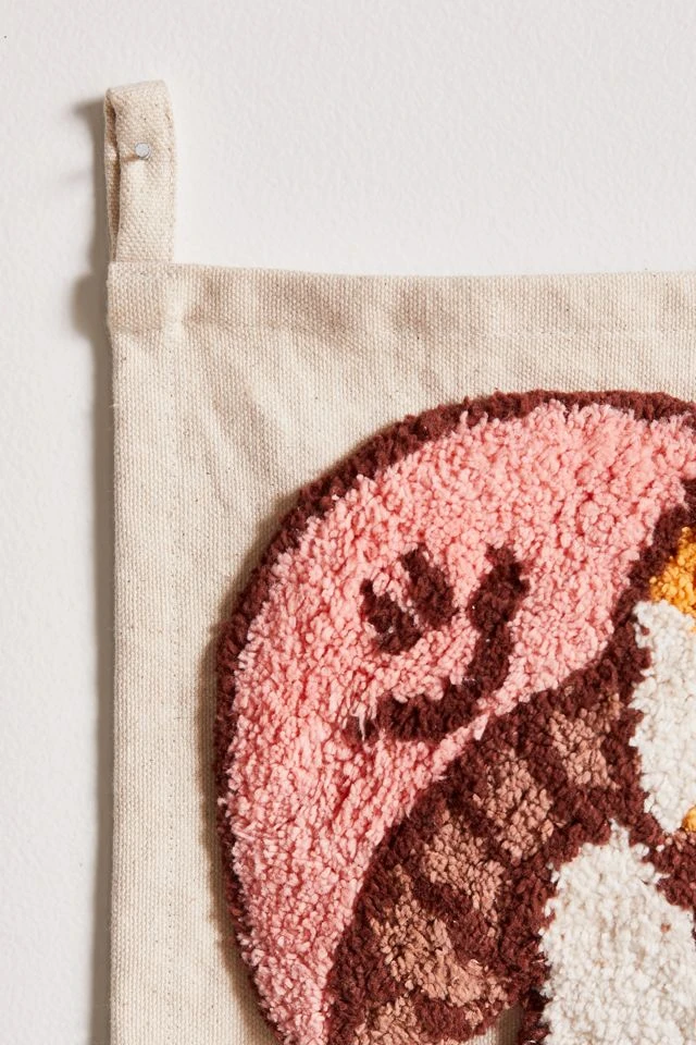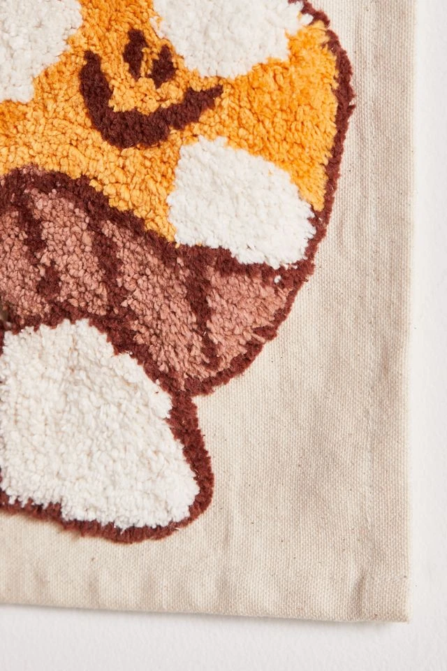 Full of charm and whimsy, this small-scale tapestry features happy mushrooms constructed from tufted embroidery. Complete with loops at upper corners.