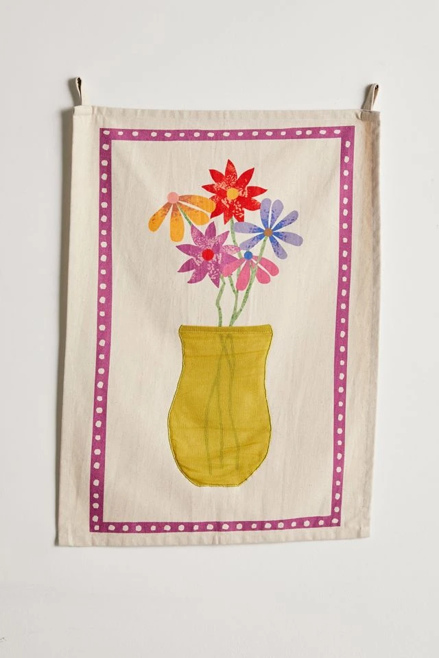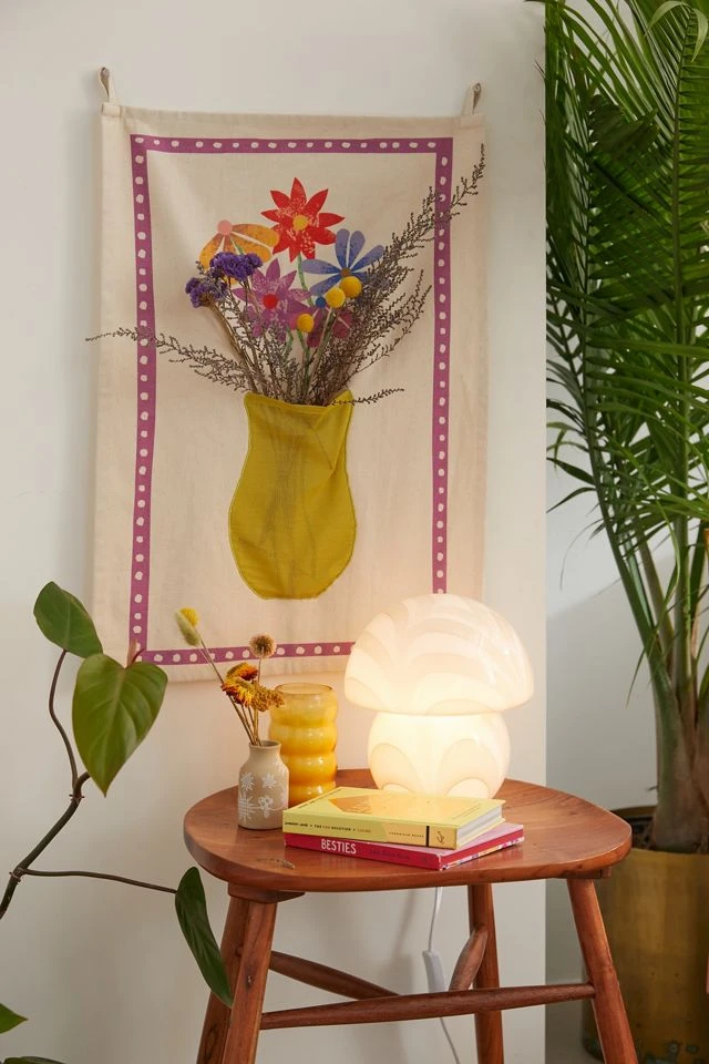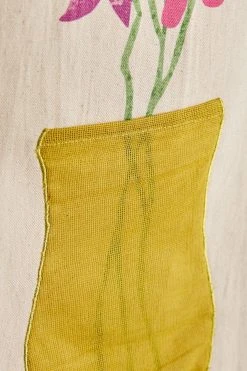 Hold a bouquet of dried flowers in this boho-sweet tapestry featuring a built-in pocket and a bordered edge. Topped with applique mesh and looped tabs at the upper corners.