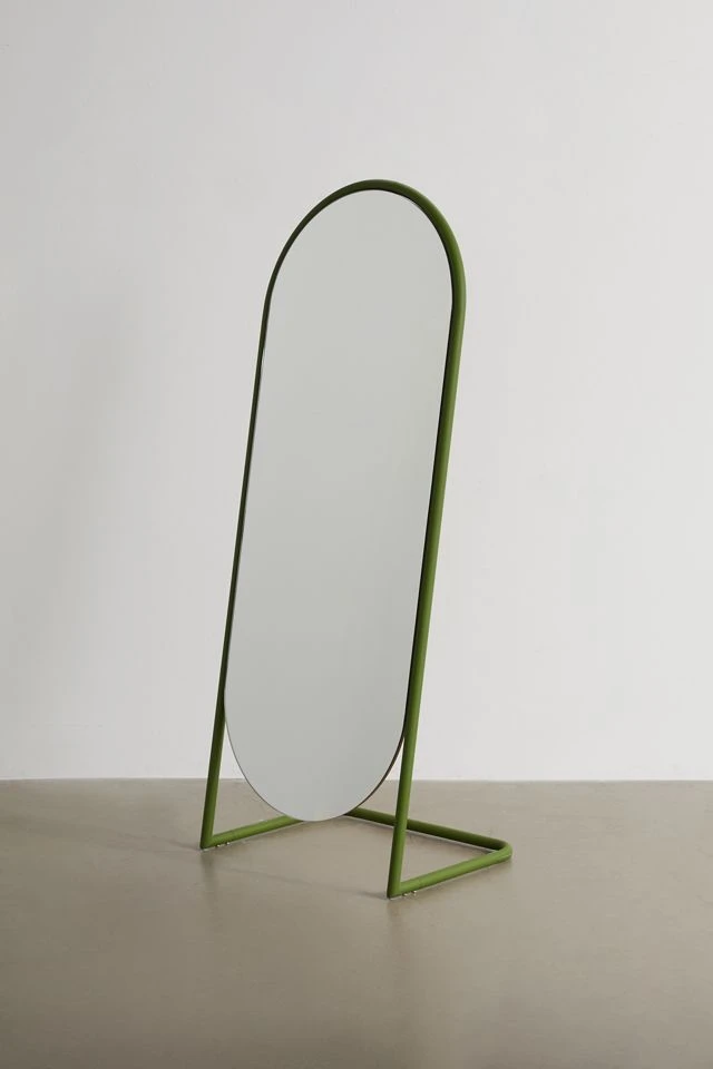 Equipped with an ovular mirror framed by an arc-shaped iron frame, this floor mirror adds a retro-modern accent to your space. Assembly required. Available exclusively at Urban Outfitters.