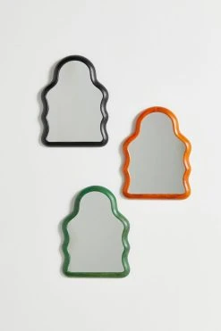 With a wavy silhouette and thick, curved wood frame, this wall mirror creates a standout centerpiece for your wall display. Mounts to wall.