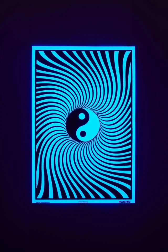 Find your balance with this hypnotic black and white yin yang motif blacklight poster.