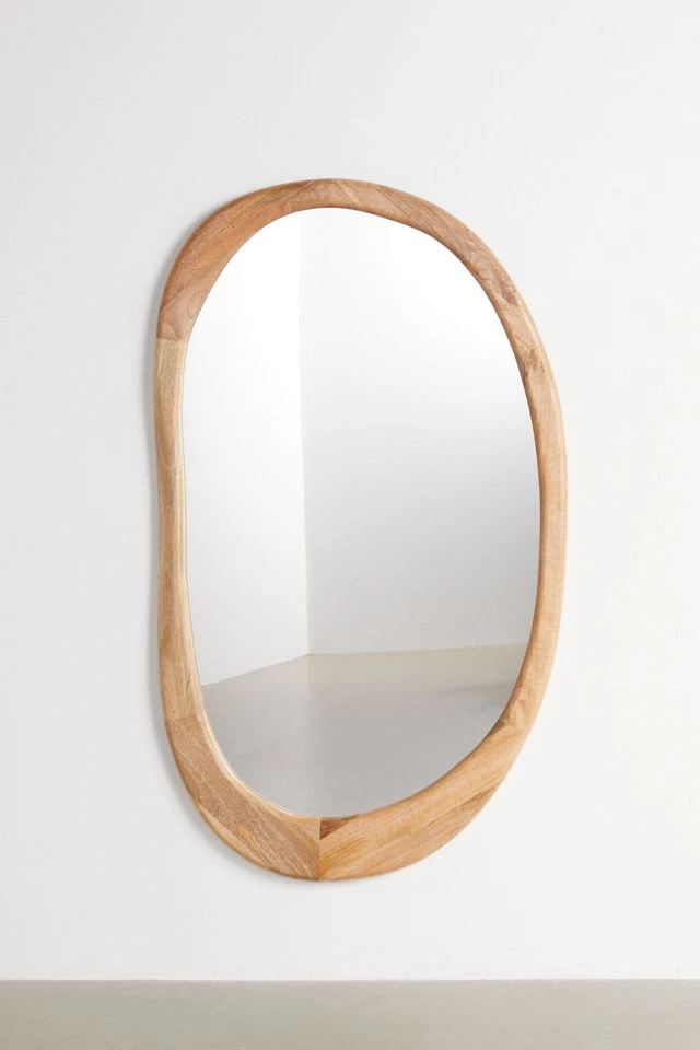 Organic form brings inviting energy to your space with this mango wood wall mirror featuring a curving frame. This custom furniture piece will be made to order just for you. Available exclusively at Urban Outfitters.