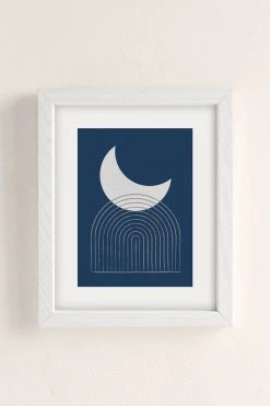Budget π MoonlightPrint Moon Mountain Blue Mid Century Modern Art Print White Wood Frame βοΈ