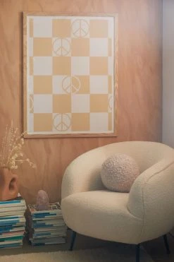 Budget π Gnomeapple Checkered Peace Sign Sand Color Art Print Natural Wood Frame π§¨