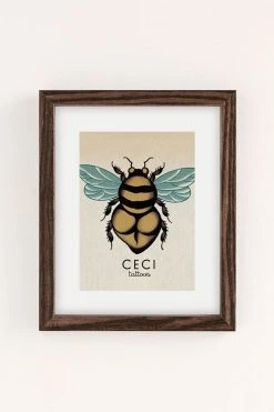 Hot Sale β CeciTattoos Bumblebutt Bee Art Print Walnut Wood Frame π―