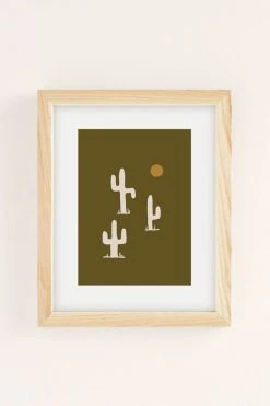 Best Pirce π Urban Wild Studio Saguaro Silent Disco Olive Art Print Natural Wood Frame π